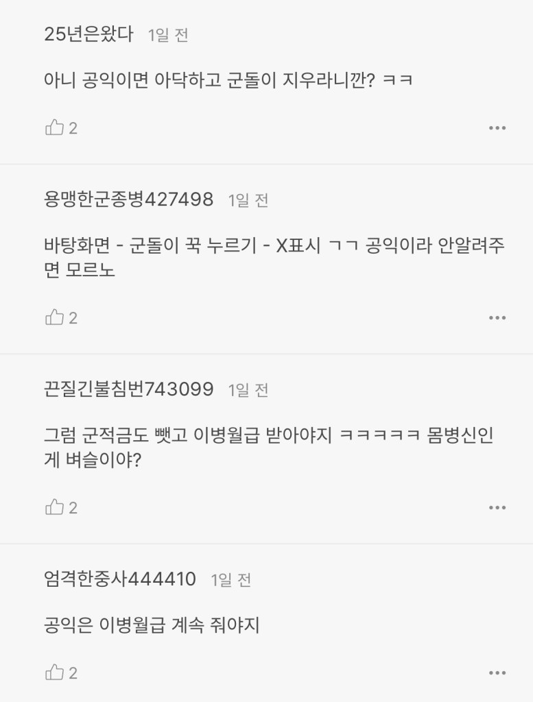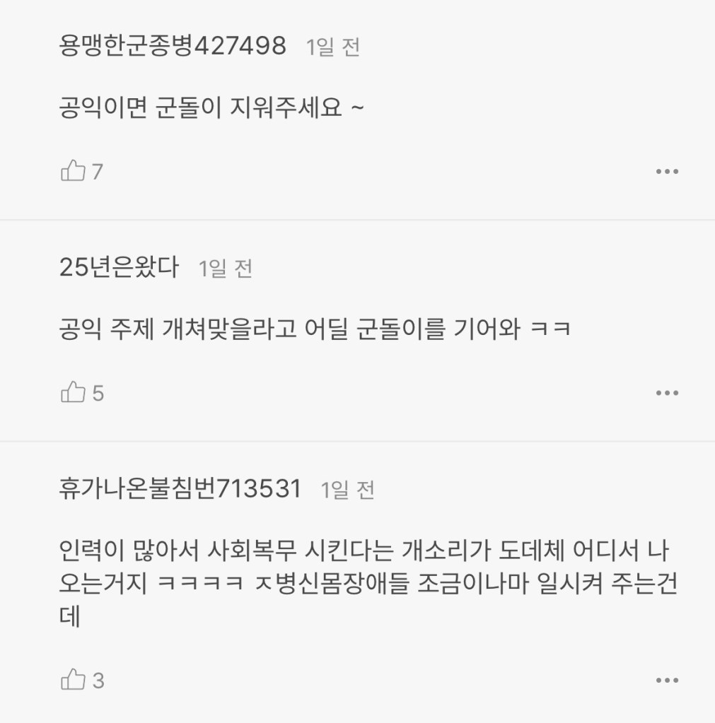 쉽게 분풀이할 곳이 공익이라는 건 알겟는데 ..